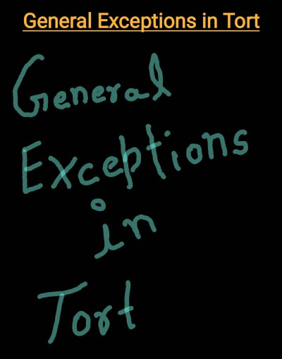We have understood, what tort is and what are its elements. Now, we come to its general exceptions, that is, the grounds on which a person committing a wrongful act is absolved from his liability to make good or compensate for the loss caused to the other. These are important because when one complains of a wrongful act, the other may deny the commission of the act or plead that his case his covered under exceptions and thus cannot be held liable. They are as follows –